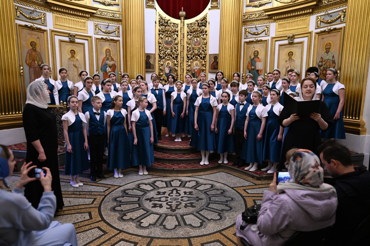В концерте участвовали женский хор "Весна" Московского педагогического государственного университета под руководством художественного руководителя и дирижера, лауреата международных конкурсов, Елены Весниной и хор "Согласие" детской музыкальной школы им. А.Н.Скрябина, под руководством художественного руководителя и дирижера, Почетного работника культуры г. Москвы, Татьяны Бисеровой. Хористы исполнили пасхальные песнопения и песни, посвященные подвигу советского народа, одержавшего победу в Великой отечественной войне. Руководители хоров, выступавших в пасхальном концерте, много лет являются певчими правого хора храма святителя Филиппа, митрополита Московского.