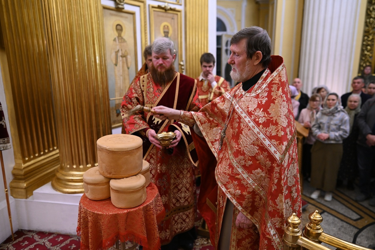 После заамвонной молитвы протоиерей Иоанн Зарецкий освятил артос.