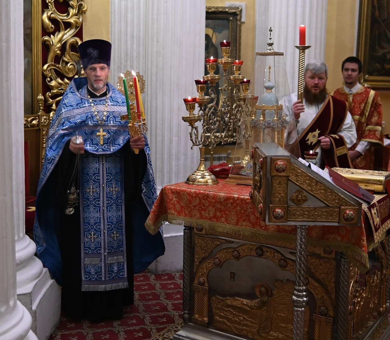 Божественную Литургию в ночь Святой Пасхи Христовой совершил клирик храма святителя Филиппа прот. Иоанн Зарецкий в сослужении диакона Романа Лапина.