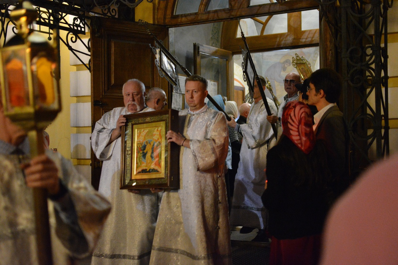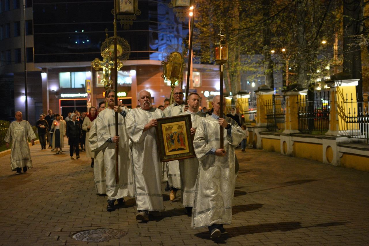 Полунощницу Великой субботы, Пасхальный Крестный ход, Пасхальную Утреню в храме святителя Филиппа, митрополита Московского, совершили клирики храма.