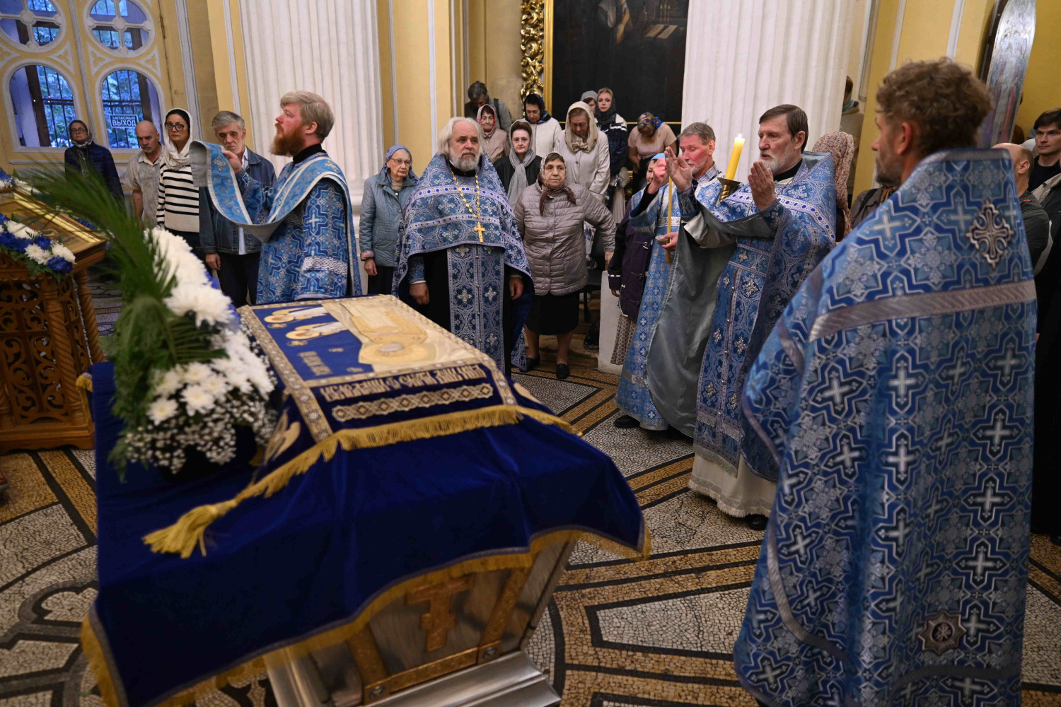 Всенощное бдение с Чином погребения Пресвятой Богородицы в храме святителя Филиппа, митрополита Московского, совершили клирики храма протоиерей Иоанн Зарецкий, иерей Игорь Филоненко, иерей Александр Тараканов и диакон Роман Лапин.