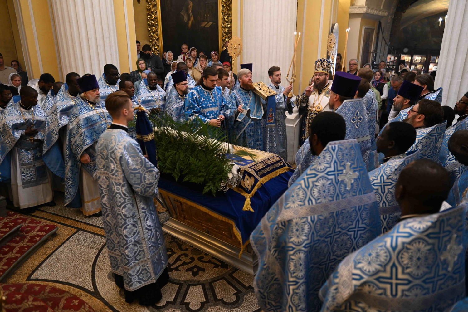 Божественную Литургию в храме святителя Филиппа, митрополита Московского, возглавил настоятель храма Высокопреосвященнейший Константин, митрополит Каирский и Северо-Африканский, Патриарший экзарх Африки. Митрополиту Константину сослужили клирики храма святителя Филиппа, члены делегации Патриаршего экзархата Африки, состоящей из благочинных церковных округов различных стран Африки, сотрудников Патриаршего экзархата Африки.