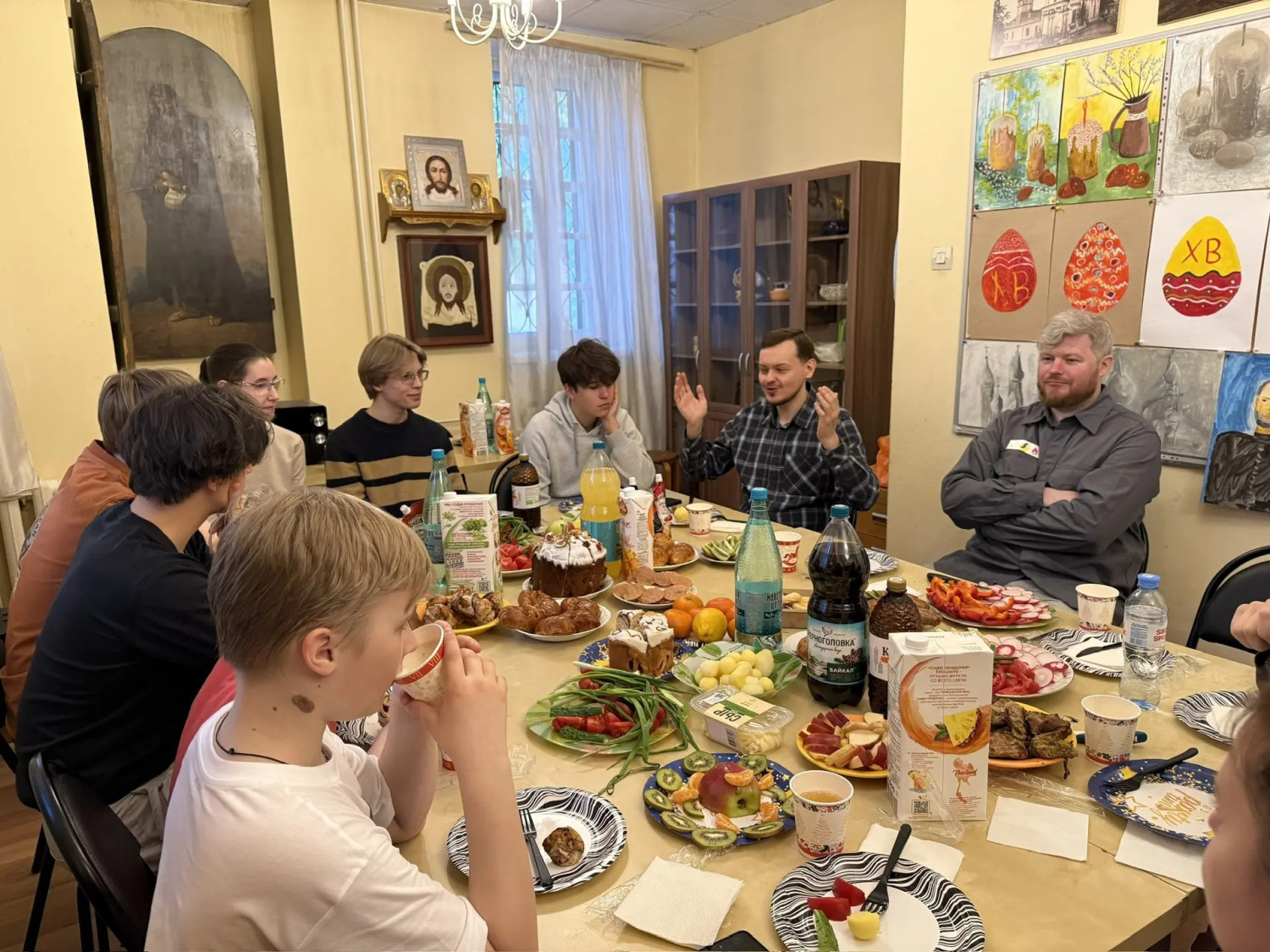 17 апреля, в пятницу Светлой седмицы, молодёжный актив храма святителя Филиппа собрался на пасхальную встречу. Её провёл специалист по приходскому просвещению — чтец Александр Бородин.