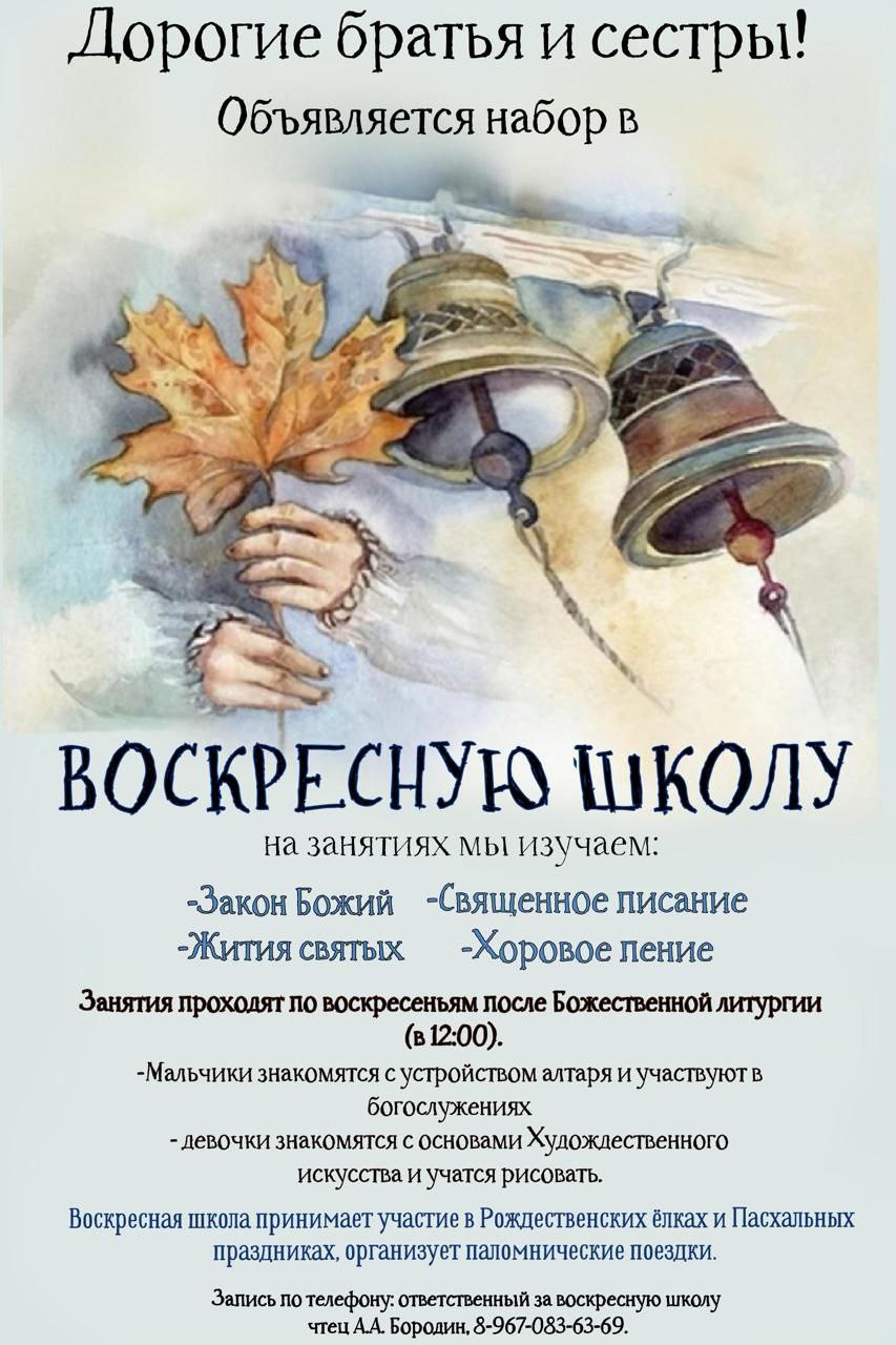По всем вопросам записи и уточнения деталей обращайтесь к ответственному за Воскресную школу — чтецу Александру Бородину.